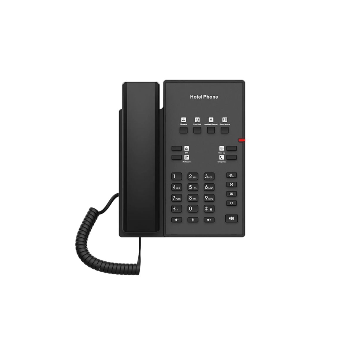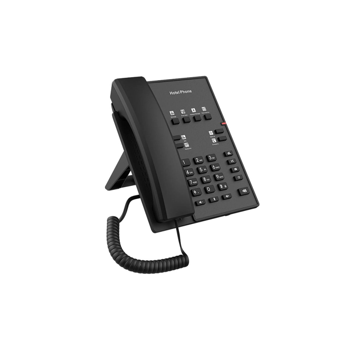 Fanvil H1 - гостиничный IP-телефон, обновленная бюджетная модель 2023г. от Fanvil. Высокое качество передачи голоса, 2 SIP-аккаунта, сетевой порт 10/100 Мбит/с, 8 программируемых клавиш сделают процесс развертывания телефонной сети в отеле простым и в тоже время бюджетным делом.