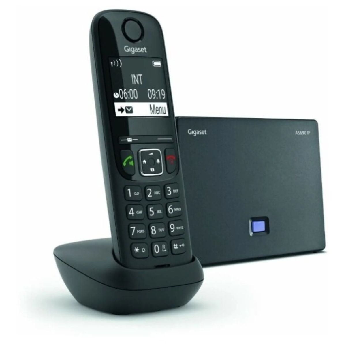 Dect-телефон Gigaset AS690IP поддерживает подключение по аналоговым или VoIP-каналам. Телефон может работаь одновременно на двух типах линий. растояние работы в помещении до 20 м, на открытой местности — до 300 м.