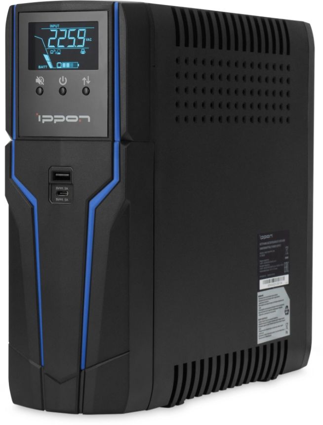 Источник бесперебойного питания Line-Interactive, чистая синусоида; P-нагр.1000 ВА/600 Вт, LCD дисплей; U-вх.185…280 В; 1 АКБ 12 В, 9 Ач; защита от перегрузки и КЗ; USB; вход 1xSchuko, выход 2xSchuko батарейной поддержкой, 2xSchuko байпассные с фильтрацией; 1xUSB, 2xRJ-45; 0…+40°C; 99х280х308 мм. Время работы от батарей при средней нагрузке 7 мин.