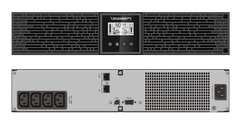 Источник бесперебойного питания line-interactive, чистая синусоида; P-нагр.1000 ВA/900 Вт; U-вх.220 В, 2 АКБ 12 В 9 Ач; LCD-дисплей, USB, RS232; розетки с батарейной поддержкой IEC320 С13: 4 шт; 439х86,5х436 мм