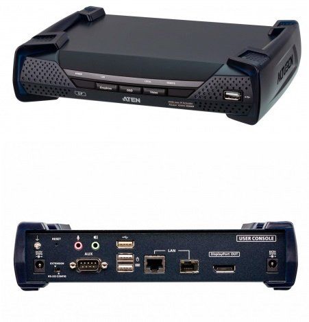 Удлинитель-приемник, KVM USB HDMI+AUDIO+RS232, 10км при прямом подкл через SFP модуль/неогранич. через switch, 1xUTP Cat5e, DP+4xUSB A-тип+2xMINI JACK+DB9+SFP, 9xF+M, спец.шнур, макс.разр. 3840x2160, БП в комплекте, DC 5В, 8Вт, 0…+50°C, 227х171х54 мм.