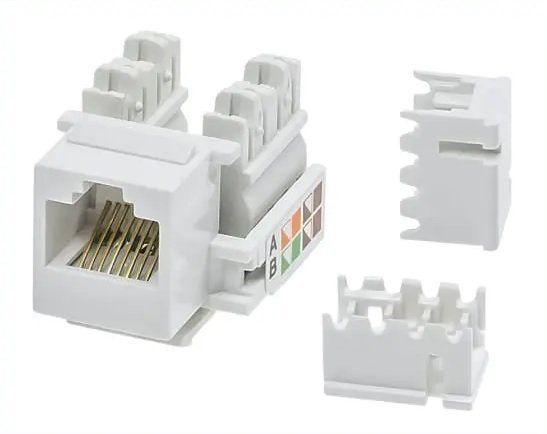Модуль-вставка типа Keystone, категория 5e, RJ-45/8P8C, 110 IDC, 90 градусов, неэкранированный, белый.