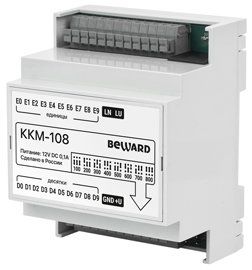 Коммутатор KKM-108 для многоабонентского домофона DKSxxxx; до 800 абонентов при использовании восьми коммутаторов, координатно-матричная линия связи; -10...+50С; 12В DC; 0.1 A; 1.2Вт; 71х91х58 мм; монтаж DIN рейку