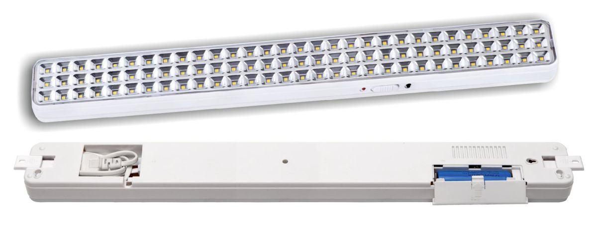 Светильник аварийного освещения светодиодный непостоянного действия, 187-242В, 90 сверх ярких светодиодов с длительным сроком службы, световой поток 300 Лм, 1 Li-ion аккумулятор 3.7 В, 2200 мАч, время свечения - до 4 часов, 505х75х45 мм, 0.84 кг, 0...+40°С