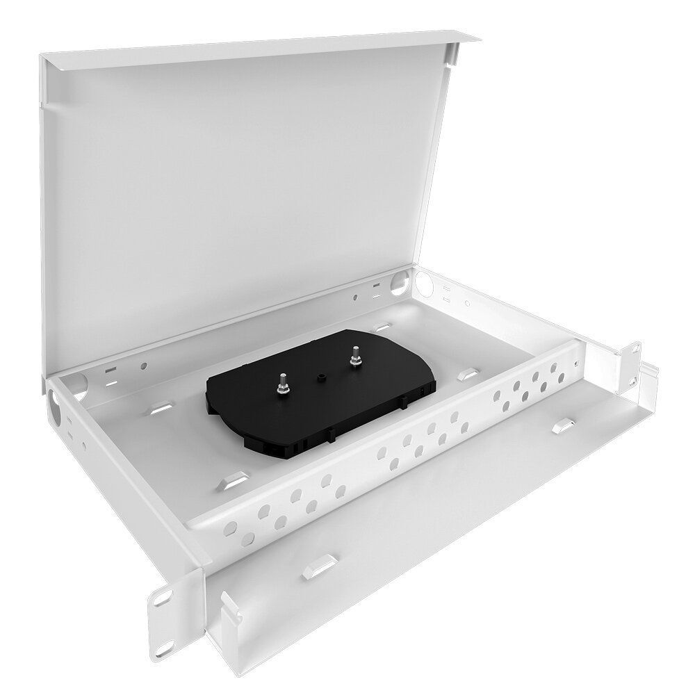 Кросс бокс оптический 19", 1U, на 24 SC(FC) две сменные панели, со сплайс-кассетой, без пигтейлов и проходных адаптеров, цвет серый (RAL 7035), 410х200х45 мм.