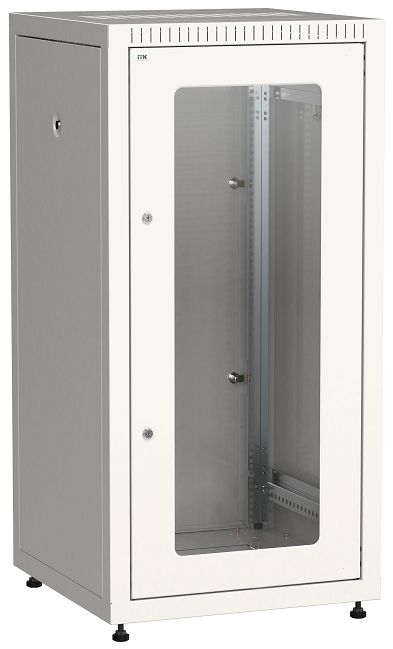 Шкаф телекоммуникационный 19" напольный, передняя дверь стекло, задняя дверь металл, 18U, 932х600х800 мм (ВхШхГ), полезная глубина 700 мм, распределенная нагрузка: 700 кг, цвет серый.