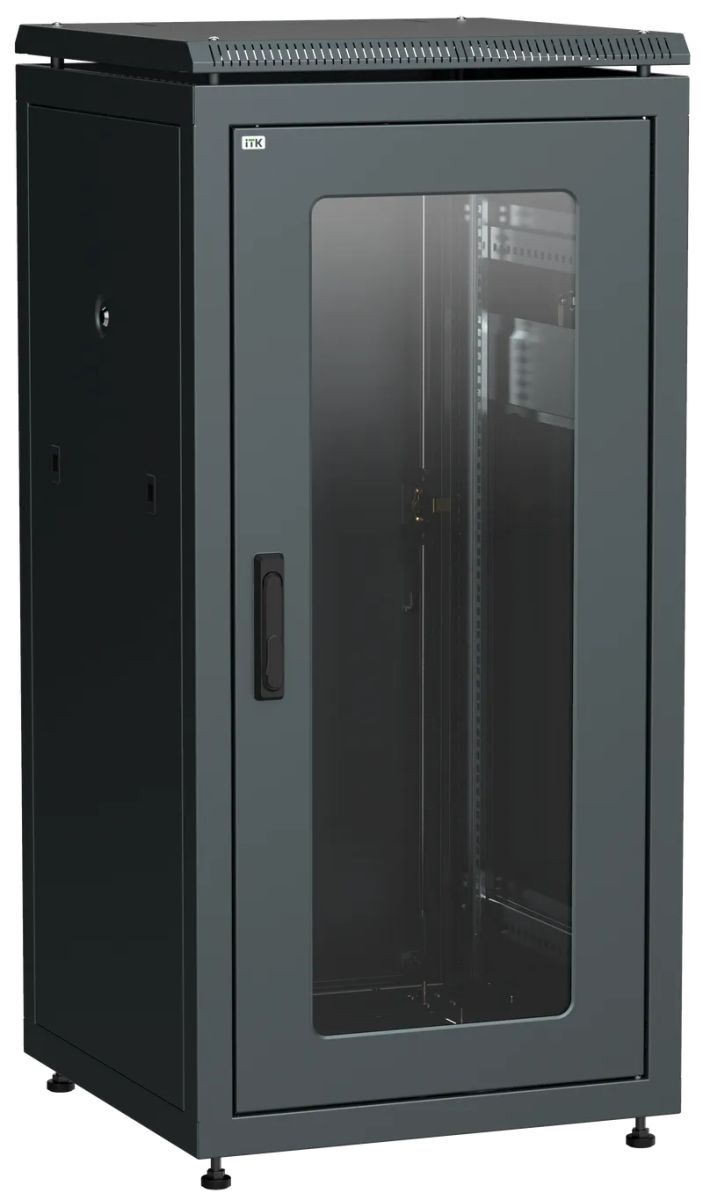 Шкаф телекоммуникационный 19", напольный, 18U, 980x600х800 мм (ВхШхГ), полезная глубина 715 мм, передняя дверь стекло, задняя дверь металлическая; ручка с замком; распределенная нагрузка: 1000 кг; цвет черный (RAL 9005).