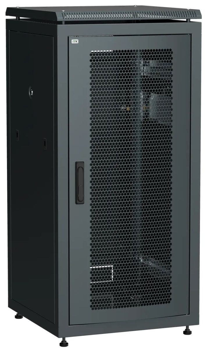 Шкаф телекоммуникационный напольный 19'', 24U, дверь перфорированная, допустимая распределенная нагрузка 1000 кг, полезная глубина 715 мм, цвет черный, разобранный, 1250х600х800 мм.