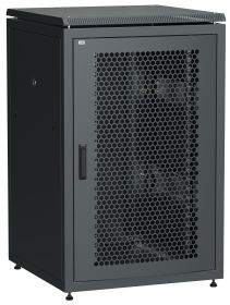 Шкаф телекоммуникационный напольный 19'', 24U, передняя дверь перфорированная, задняя дверь металл, допустимая распределенная нагрузка 1000 кг, полезная глубина 715 мм, цвет черный, разобранный, 1250х800х800 мм.