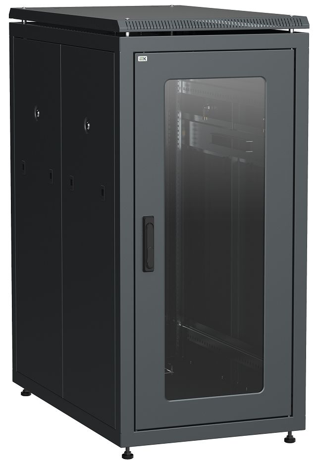 Шкаф телекоммуникационный 19" напольный, дверь стекло, 28U, 1425х600х1000 мм (ВхШхГ), полезная глубина 915 мм, ручка с замком, распределенная нагрузка: 1000 кг, цвет чёрный.