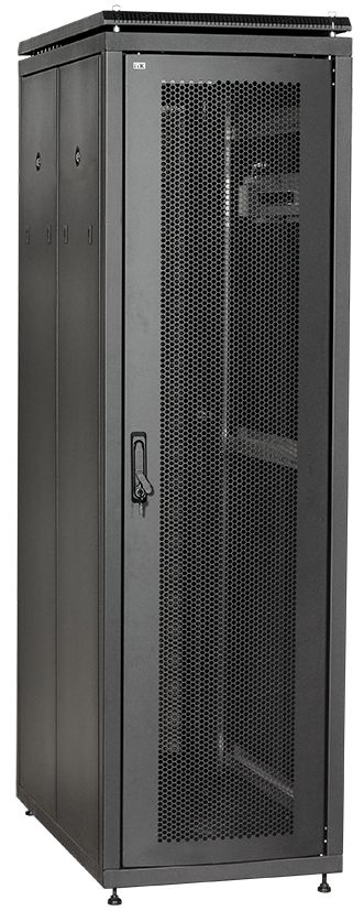 Шкаф телекоммуникационный 19", напольный, 38U, 1870x800х1000 мм (ВхШхГ), полезная глубина 915 мм, передняя дверь перфорированная, задняя дверь перфорированная; ручка с замком; распределенная нагрузка: 1000 кг; цвет чёрный (RAL 9005).