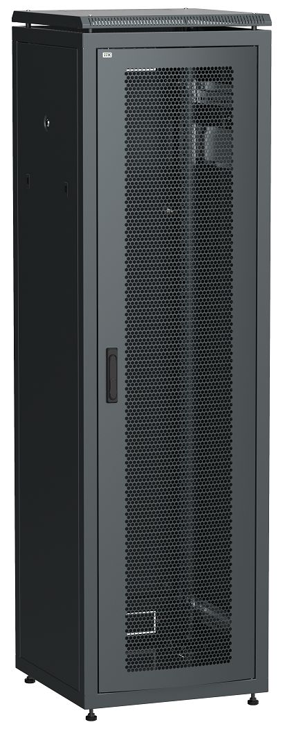 Шкаф телекоммуникационный 19" напольный, дверь перфорированная, 42U, 2055х600х800 мм (ВхШхГ), полезная глубина 715 мм, ручка с замком, распределенная нагрузка: 1000 кг, цвет чёрный.