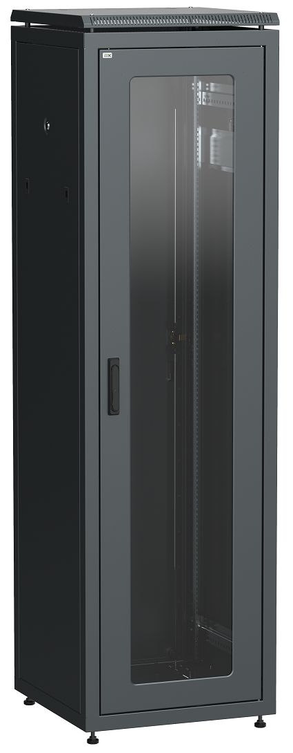 Шкаф телекоммуникационный 19" напольный, дверь стекло , задняя дверь металл, 47U, 2270х600х800 мм (ВхШхГ), полезная глубина 715 мм, ручка с замком, распределенная нагрузка: 1000 кг, цвет чёрный.