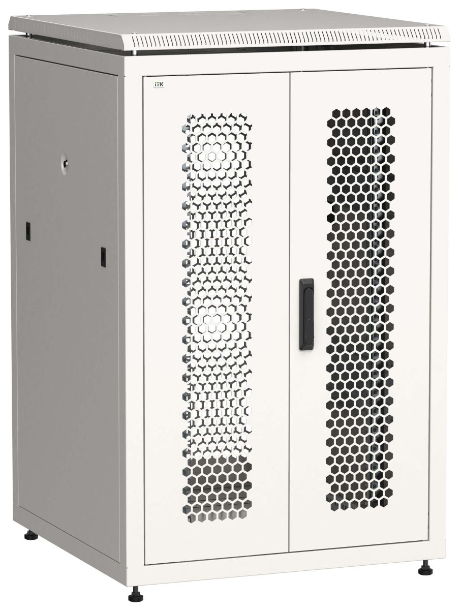 Шкаф телекоммуникационный 19", напольный, 24U, 1250x800х800 мм (ВхШхГ), полезная глубина 715 мм, передняя дверь двухстворчатая перфорированная, задняя дверь перфорированная; ручка с замком; распределенная нагрузка: 1000 кг; цвет серый (RAL 7035).