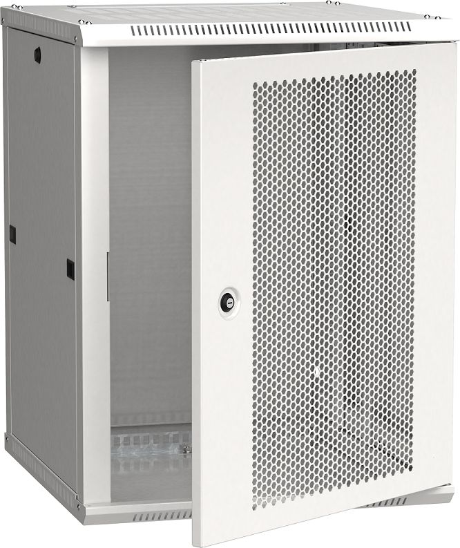 Шкаф телекоммуникационный 19" настенный, дверь перфорированная, 15U, 770х600х600 мм (ВхШхГ), полезная глубина 500 мм, распределенная нагрузка: 90 кг, IK 10; цвет серый.