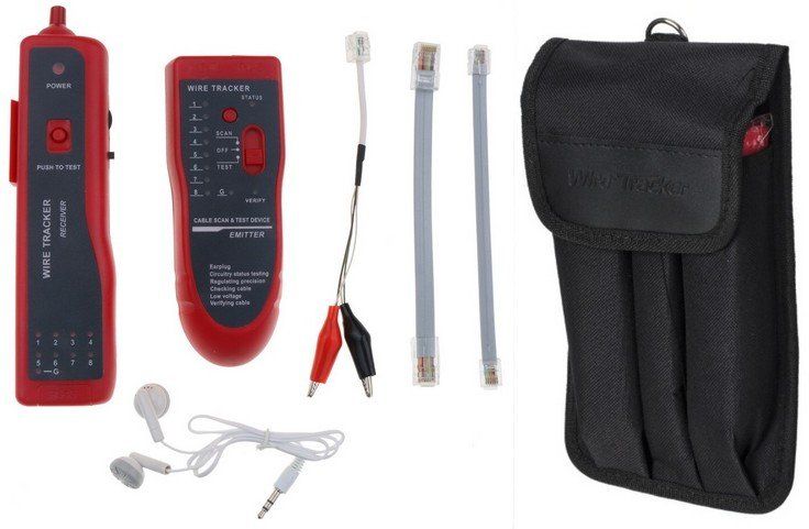 LAN-тестер для витой пары; Бесконтактное обнаружение кабеля, поиск ошибок в схеме разводки, замыканий, обрывов и кросс-соединений сетевого кабеля.