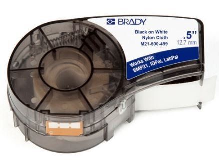 M21-500-499 лента для принтера BMP21-Plus, ширина 12.7 мм, длина 4.87 м, нейлон, черный на белом фоне.