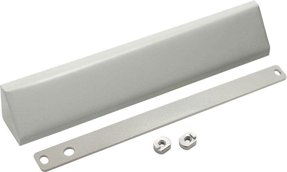 Монтажный комплект для замка ALM-200P на L-образном уголке с декоративным кожухом и планкой. Цвет: серый.