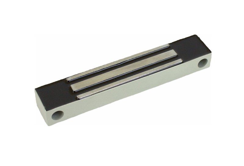 Электромагнитный влагозащищенный замок IP67, усилие 100 кг, 12 В DC, 0,4 A, -40...+40 °С, 180x33x23 мм, уголок в комплекте. Механический компенсатор остаточной намагниченности на якоре замка. Цвет серый.