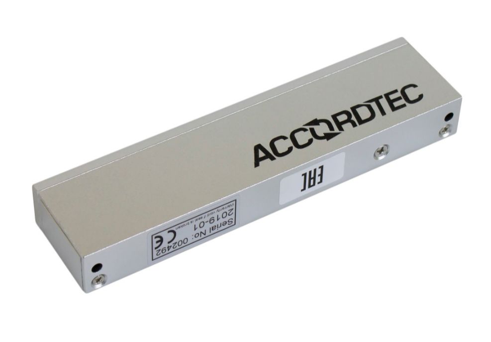 Замок электромагнитный влагозащищённый БЕЗ КРЕПЁЖНОЙ ПЛАНКИ, усилие удержания 180 кг; U-пит DC 12В; I-потр ≤ 500 мА; IP67; t-раб -40...+40°С; габ.размеры: 170х35х23 мм; вес: 1100г; цвет: серебристый.