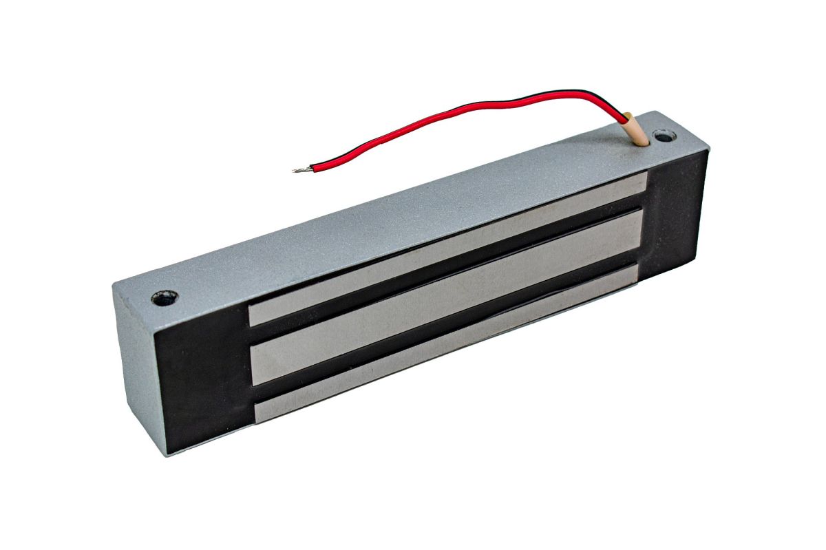 Электромагнитный влагозащищенный замок IP67, сила удержания 180 кг, 12 В/0,4 А, 180х40х25 мм, -40...+40°C, масса 1,6 кг. Механический компенсатор эффекта остаточной намагниченности на якоре замка. Цвет серебряный металлик, в комплекте с уголком.