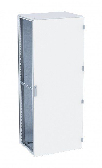 Шкаф распределительный стальной, монтажная панель, замок на двери, IK10, IP55 (при условии использования боковых панелей SP), габ.размеры (ВхШхГ) 2000х800х500 мм. Боковые панели и цоколь основания в стандартную комплектацию шкафа не входят, при заказе указываются отдельно.