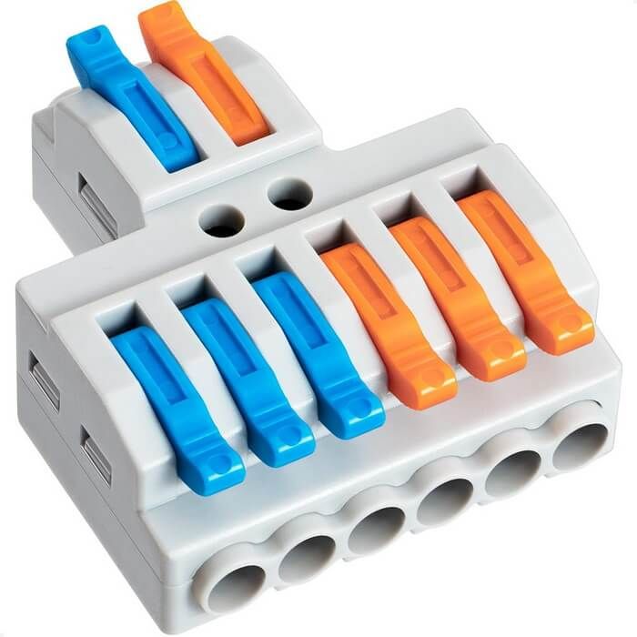 Универсальная проходная изолированная клемма предназначена для многоразового подключения любых типов медных проводников: одножильных и многожильных. Зажим проводов в клемме осуществляется при помощи рычагов. На корпусе есть боковые выступы для возможности крепления к любым поверхностям. Клеммы обеспечивают простой и быстрый монтаж.