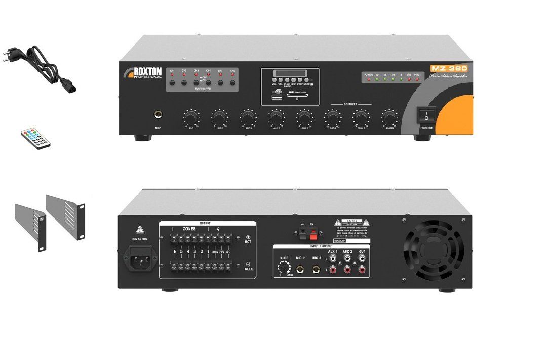 Трансляционный усилитель ROXTON MZ-360 применяется для организации систем трансляции, оповещения, фонового озвучивания и громкой связи.