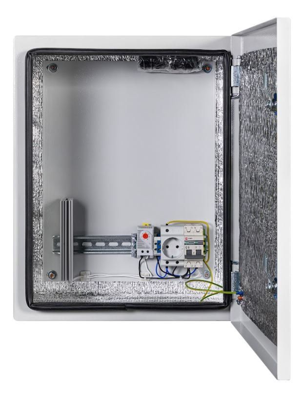 Климатический навесной шкаф предназначен для установки как внутри, так и снаружи помещений, размещения и установки в нём электрооборудования, питающегося от сетей 230В AC ±10% 50 Гц, защиты от неблагоприятных условий окружающей среды (класс защиты IP66) и поддержания заданного температурного режима при эксплуатации этого оборудования.
