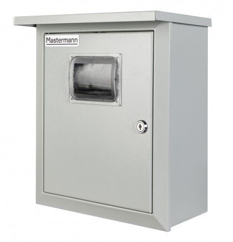 Шкаф электротехнический навесной с козырьком и окошком, серый RAL7035, IP41, габариты козырька 300х180 мм, внеш.габариты 280х330х140 мм. Комплектация: замок 1 шт, ключ 2 шт, монтажная панель 1шт.
