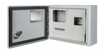 Распределительный навесной шкаф для установки однофазного электронного счетчика и 4 однополюсных автоматических выключателя с металлической дверцей (дверца со стеклом); IP41, габ.размеры (ШхВхГ) 280х230х120 мм. В комплекте: шины «земля» и «ноль», гермовводы, заглушки, наклейка.