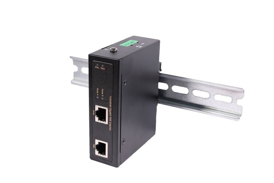 Промышленный гигабитный инжектор PoE; IEEE 802.3af/at; 30 Вт; 10/100/1000Base-T; 48-56 DC; -40 ... +75 °С; 103,5x32x81,5 мм; Монтаж на DIN-рейку.