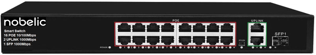 Коммутатор неуправляемый 18 портовый с PoE; 16xRJ-45 портов 100Мб/с PoE (до 30Вт на порт(af/at); 2x RJ-45 порта 100Мб/с Uplink; 1хSPF бюджет PoE 250 Вт; поддержка режима EXTEND с дальностью связи до 250 м при скорости 10 Мбит/с; AC 100-240 В; 250 Вт; -10...+55℃; грозозащита до 6 кВ; 312х185х45мм.