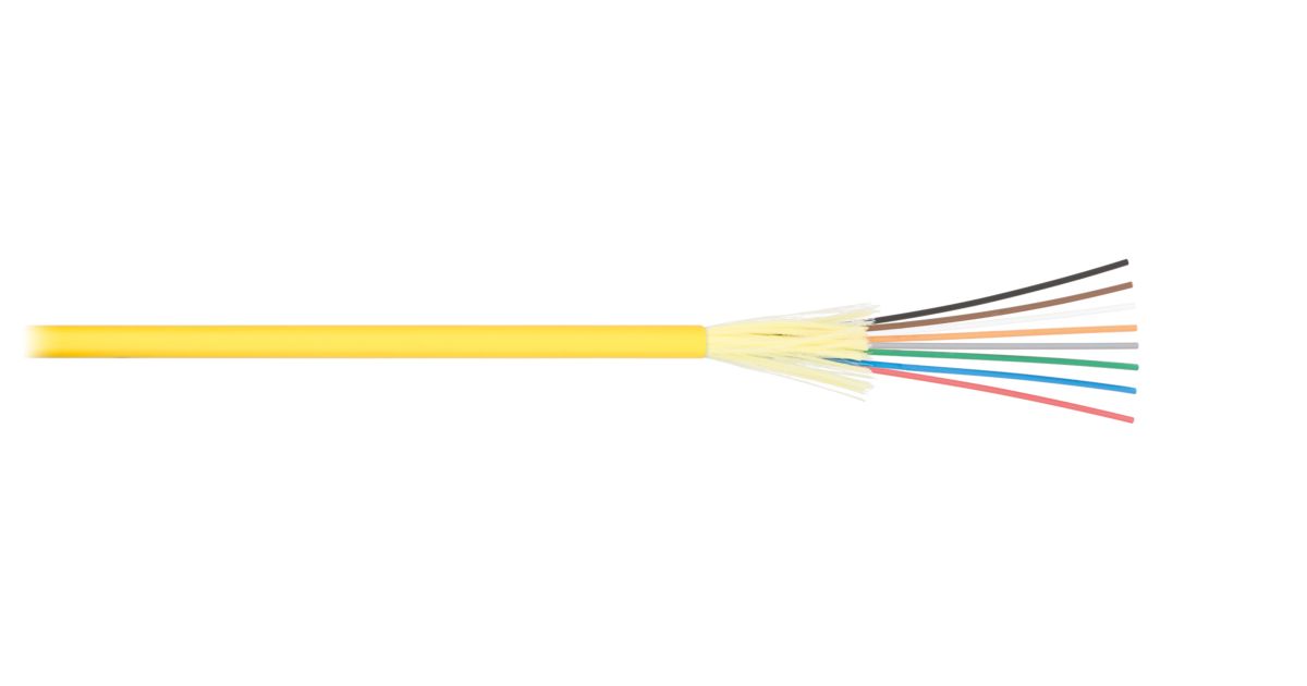 Кабель волоконно-оптический, 4 волокна, одномодовый 9/125мкм, стандарта OS2, внутренний, распределительный, с плотным буфером, LSZH нг(A)-HFLTx, желтый. %Описание%