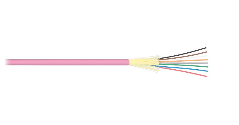 Кабель волоконно-оптический, 12 волокон, многомодовый 50/125мкм, стандарта ОМ4, внутренний/внешний, распределительный, с плотным буфером, нг(А)-LSLTx, маджента.