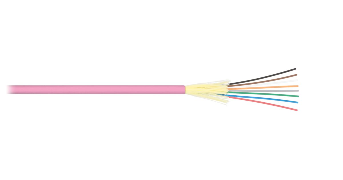 Кабель волоконно-оптический, 12 волокон, многомодовый 50/125мкм, стандарта ОМ4, внутренний/внешний, распределительный, с плотным буфером, нг(А)-LSLTx, маджента.