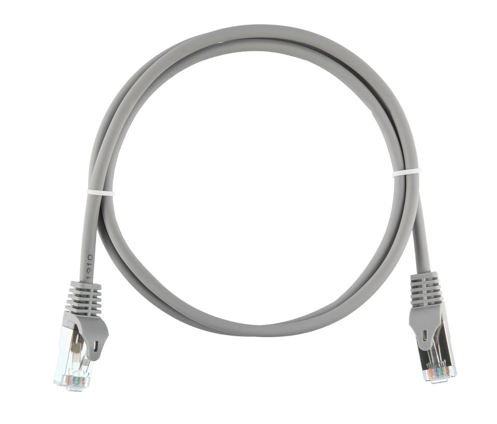 Коммутационный шнур F/UTP 4 пары, Кат.5е (Класс D), 100МГц, 2хRJ45/8P8C, T568B, заливной, с защитой защелки, многожильный, BC (чистая медь), 26AWG (7x0,150мм), LSZH нг(А)-HFLTx, серый, 3м