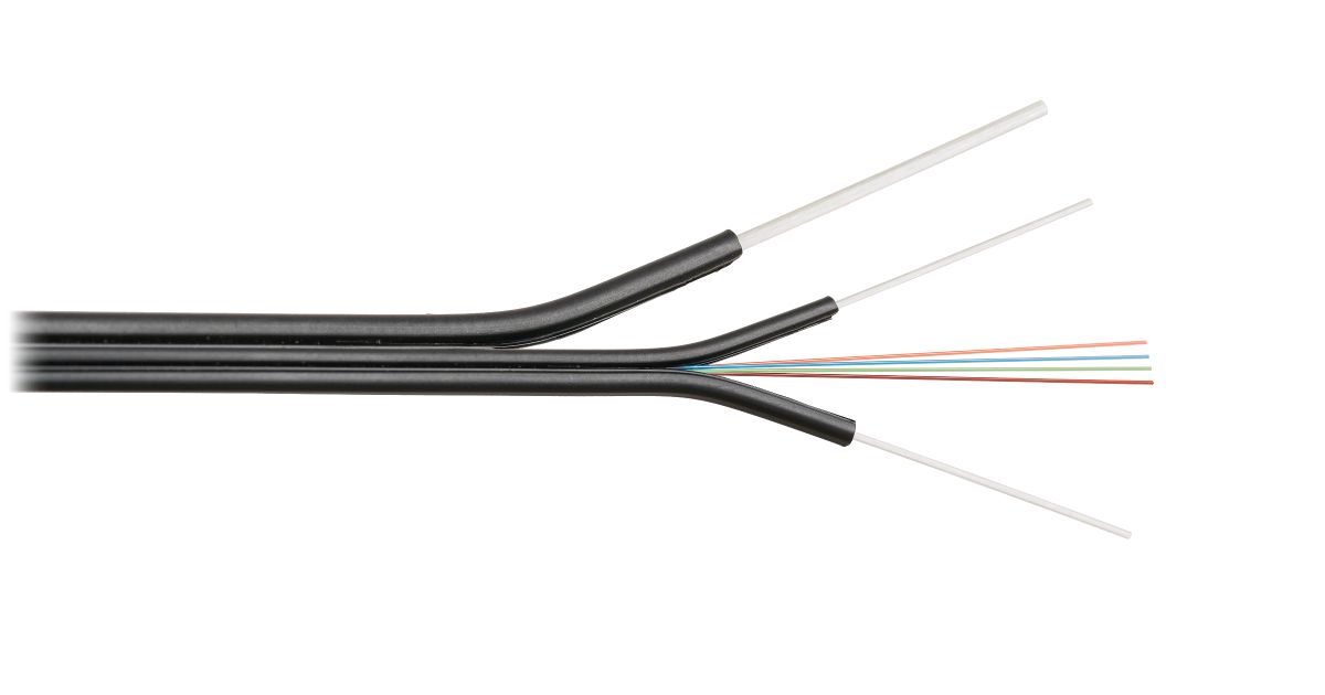 Кабель волоконно-оптический, 2 волокна, одномодовый 9/125мкм, стандарта G.652.D/G.657.A1, внутренний/внешний, бабочка со стеклопластиковыми прутками и несущим стеклопластиковым прутком, полимерный материал нг(A)-HF, черный, 0.6 кН, -40 до +60 °C.