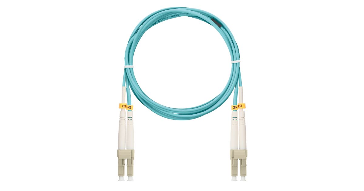 Шнур NIKOMAX волоконно-оптический, многомодовый 50/125мкм, стандарта ОМ3, LC/UPC-LC/UPC, двойной, LSZH нг(В)-HFLTx, 2мм, аква, 1м.