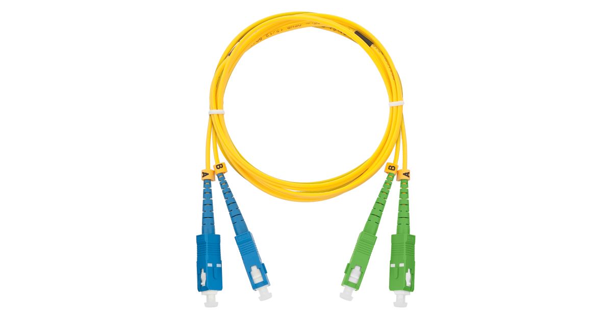 Шнур волоконно-оптический, переходной, одномодовый 9/125мкм, стандарта OS2, SC/UPC-SC/APC, двойной, LSZH нг(A)-HFLTx, 2мм, желтый, 2м.