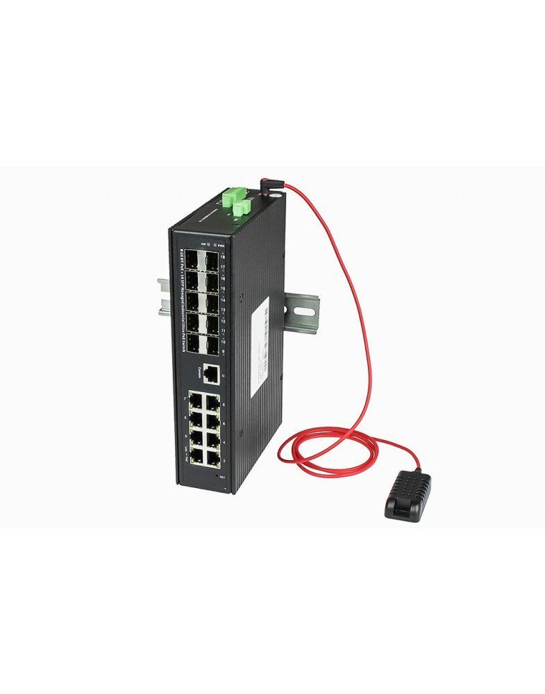 Промышленный управляемый L2+ HiPoE коммутатор сетевой 18 портовый с РоЕ гигабитный; 8хRJ45 PoE 10/100/1000 Мбит/с с PoE до 90Вт, A+B IEEE 802.3af/at/bt, 10хSFP 1000 Мбит/с, консольный порт; PoE бюджет до 720 Вт; поддержка PоE Watchdog, управление питанием, Extended PoE до 250 метров; встроенная система мониторинга температуры/ напряжения + внешний датчик температуры/ влажности, выходы типа "Сухой контакт", цифровой вход; питание: 2x входа DC37-57В(735Вт), БП в комплект НЕ входит; монтаж на DIN-рейку или на стену (крепление в комплекте), грозозащита 6кВ; -40... +80°C; 50х208х130 мм.