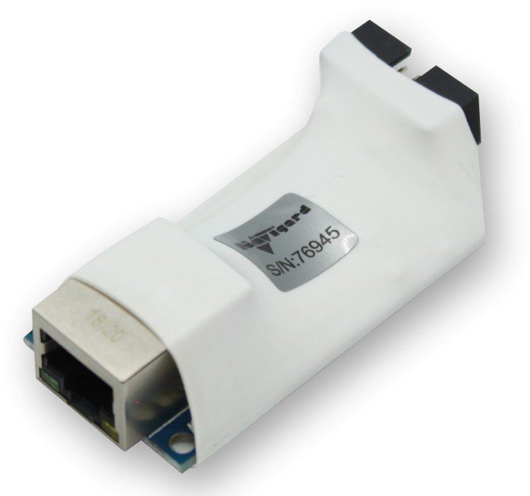 Ethernet коммуникатор для контрольных панелей NV 8704/8804/2110/2132/2164. Передача отчетов через Internet по Ethernet/GPON сетям на NV DT приемники, NV GPRS Server. Подключение к сервисному разъему панели.