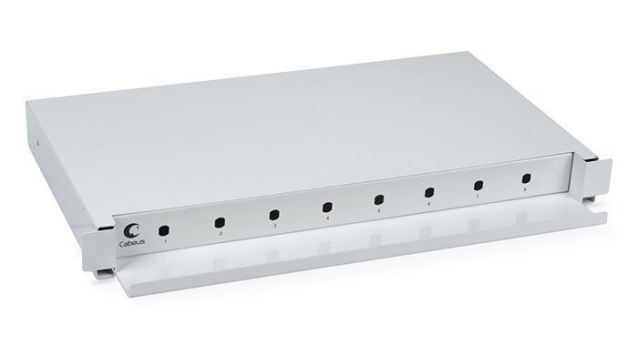Кросс бокс оптический 19" на 8 ST(FC) со сплайс пластиной, выдвижной (без пигтейлов и проходных адаптеров)