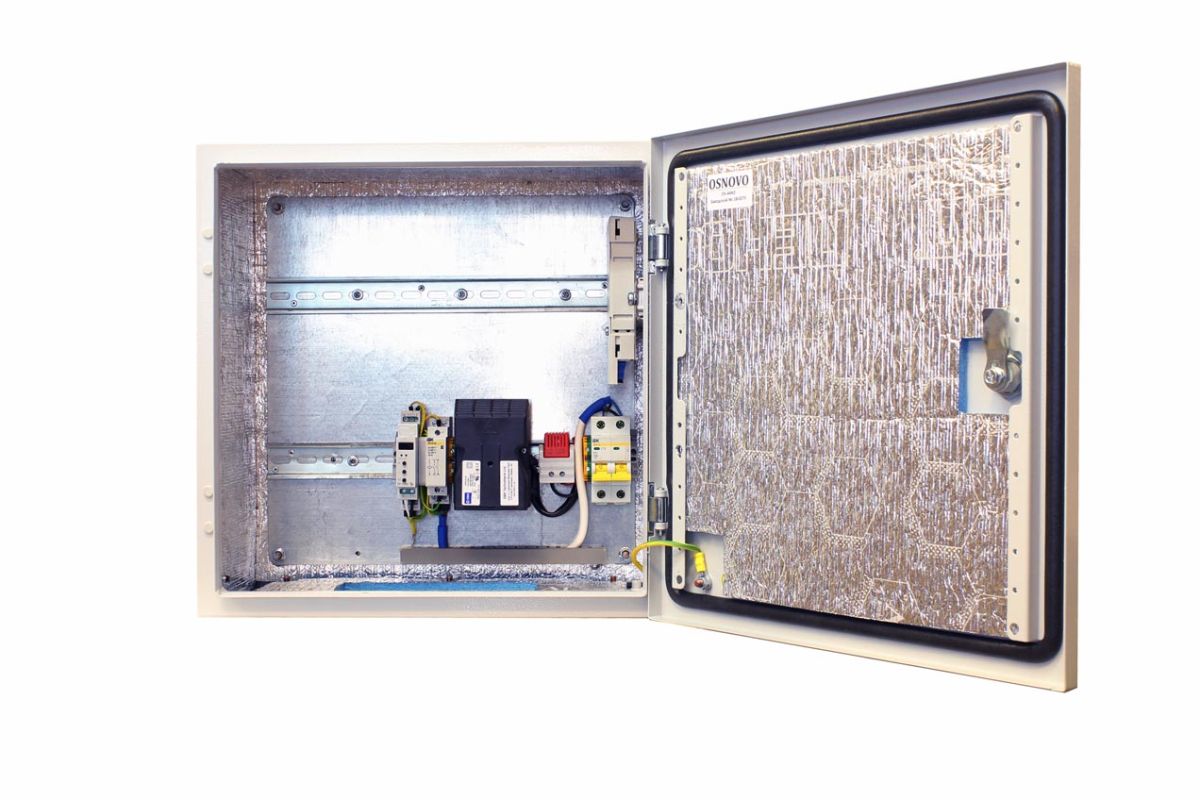 Уличная станция с оптическим кроссом + система обогрева+ теплый пуск : 2 разъема SC (ложемент 8 КДЗС, пигтейл оптический одномодовый SC 0,9мм длинна 1,5м 183x113x22мм); шкаф металлический; IP66, встроенные DIN-рейки: верхняя - 310мм, нижняя -140мм; набор гермовводов; автоматический выключатель 2P 220 В, 10A; обогреватель на DIN-рейке AC 230 В, 100Вт; вентилятор 120x120x25 мм, AC 220В, 19Вт; -50…+50°С; размеры шкафа 400x400x210 мм. Поддержание температуры внутри шкафа от-15 до +55°С (при изменении наружной температуры от -50... +50°С). Система «теплого» пуска позволяет безопасно запускать встраиваемое оборудование при допустимых для него температурах (подача питания на оборудование только при прогреве до заданной температуры основной системой обогрева).