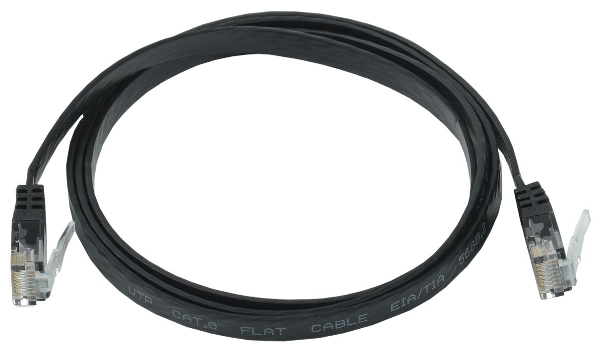 Патч-корд U/UTP, категория 6, плоский, 2xRJ45/8p8c, черный, PVC, 2 м.