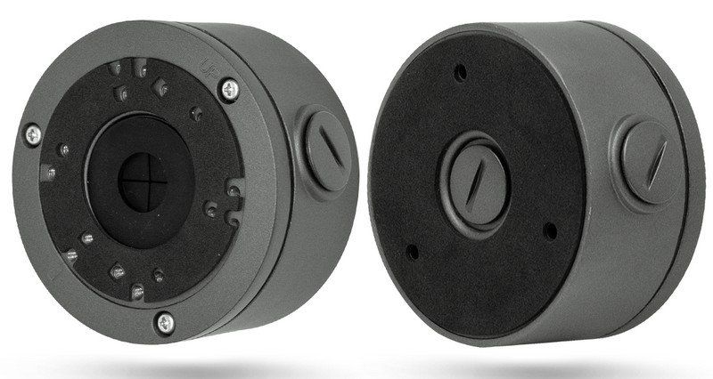 Монтажная коробка для наружной установки камер видеонаблюдения PRAXIS моделей: PP-7111MHD (II), PB-7112MHD, PP-8111MHD, PE-8112MHD, PE-7141IP A/SD, PE-8141IP, PB-8142IP; цвет серый; IP67, в комплекте гермовводы 3/4", 1/2"; 108х52мм.