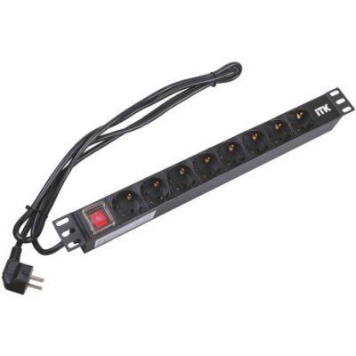 Блок силовых розеток 19" со шнуром 2м, с LED выключателем, 8 розеток SCHUKO, вилка С4 , AC 220 В/50 Гц, P max 3,5 кВт, I 16 А, 44х482,6х44 мм, ПВХ, цвет черный.