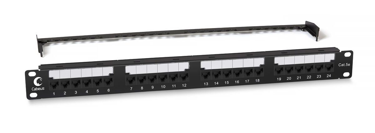 Патч-панель 19" , 1U, 24 порта RJ-45, категория 5e, Dual IDC, с задним кабельным организатором.