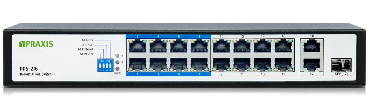 Коммутатор сетевой неуправляемый с РоЕ 26 портовый; 24 порта POE 10/100Mbps RJ-45 802.3af/3at, 1 Combo SFP/RJ-45 порт 10/1000Mbps; VLAN; POE бюджет до 225 Вт; АC 220В, 1,25A, 280x180x44 мм. Дальность передачи до 250 метров