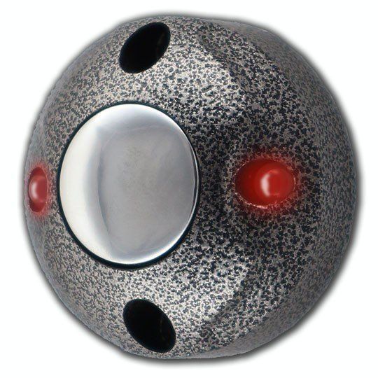 Подсветка из двух светодиодов. При смене полярности питания цвет подсветки меняется с зелёного на красный. Контакты нормально-разомкнутые (НО); 0.1 А при напряжении 12 В;Скрытая или открытая проводка; Накладной антивандальный металлический корпус из цинкового сплава; Серебряный антик, ø40 х 20 мм.